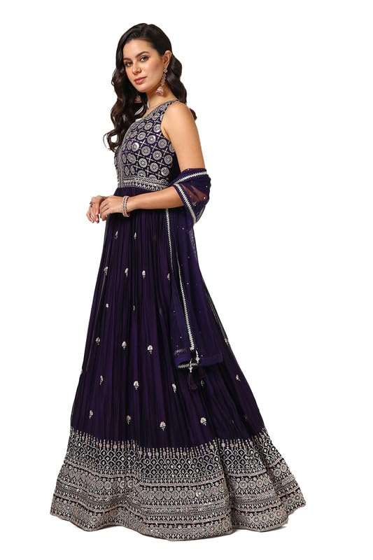 Soch Womens Purple Georgette Embroidered Gown With Sequins